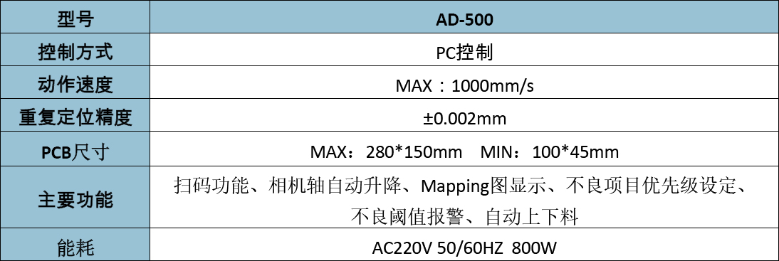 The dedicated high-speed camera is equipped with (single head and double head optional) high-speed motion module (linear motor module, high-speed stability) fully automatic loading and unloading (double material boxes, reducing the frequency of refueling) MES system functions (supporting downloading and uploading of mapping images in multiple formats)